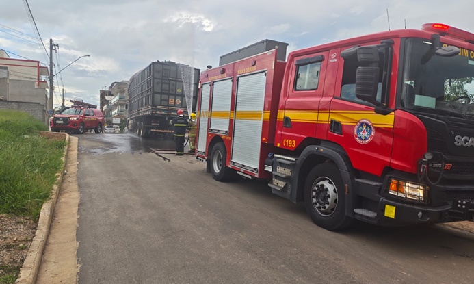 Bombeiros atendem ocorrência de possível incêndio em caminhão com carga de carvão em Alfredo Vasconcelos