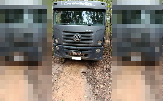 Os militares iniciaram diligências e localizaram o caminhão furtado abandonado em uma estrada vicinal, na localidade do Bananal.