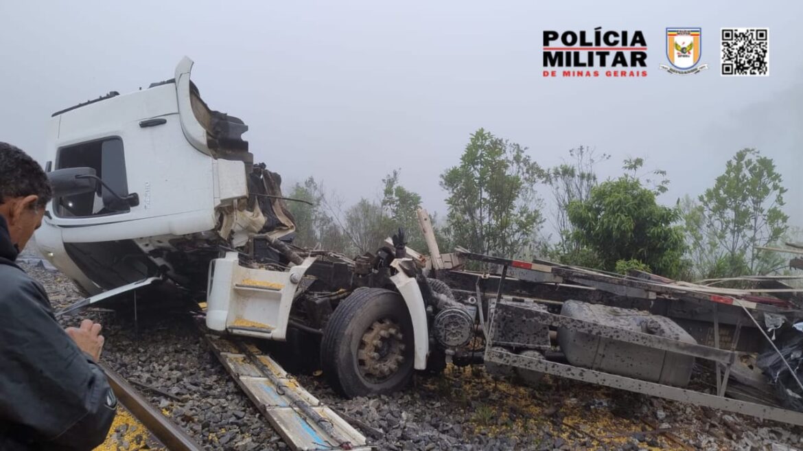 Pela dinâmica do acidente o condutor do caminhão ao realizar a passagem pela linha férrea foi atingido lateralmente pelo trem.