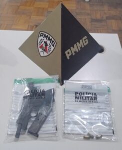 O material foi recolhido pelos militares e identificado como uma pistola calibre. 380, da marca Imbel, municiada com três cartuchos intactos.