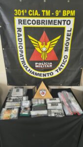 Diante de inconsistências quanto ao local de moradia, a guarnição PM deslocou-se até a residência dos autores e localizou duas buchas de maconha, uma balança de precisão, seis comprimidos de ecstasy, oito aparelhos celulares de procedência duvidosa e aquantia de R$ 496,00.