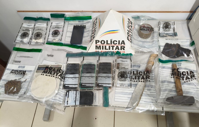Foi feita também a apreensão de uma motocicleta utilizada na atividade ilícita, além de aparelhos celulares e materiais para acondicionamento de drogas.