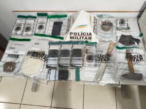 Na ação, procedeu-se à apreensão de um revólver municiado com cinco cartuchos, vinte e nove pedras de substância análoga ao crack, aparelhos celulares e a quantia de R$1.341,50.