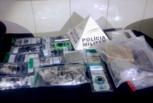 Durante a aproximação da PM, os envolvidos tentaram fugir. O menor, 16 anos, foi alcançado pelos militares e com ele, foram localizadas11 buchas de substância esverdeada semelhante à maconha; 03 invólucros de substância esbranquiçada semelhante à cocaína; 24 pedras de substância amarelada semelhante ao crack, R$ 140,00 e um aparelho celular.
