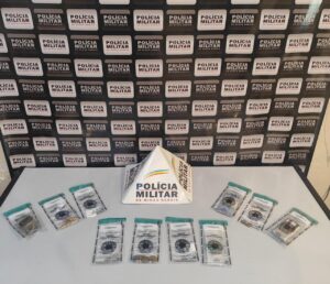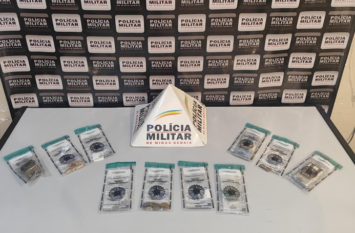 Durante a tentativa de fuga, o autor deixou cair a quantia de R$ 2.626,00, que foi apreendida. Em busca no interior da residência, com autorização da moradora, foram localizados diversos sacolés para dolagem de entorpecentes e, no quarto, uma porção e um cigarro artesanal de substância análoga à maconha.
