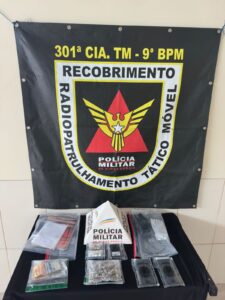 Após a abordagem estratégica de usuários que confirmaram a aquisição de drogas no local, os militares procederam à incursão no imóvel utilizado como base para a atividade delituosa e apreenderam grande quantidade de substância análoga à maconha, crack, cocaína, além de rádio comunicador, máquina de cartão e cadernos com anotações de contabilidade do tráfico.