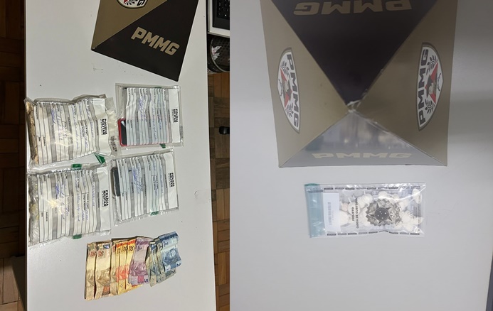 No quarto do indivíduo, foram encontrados 134 pedras de crack e 177 papelotes de cocaína. Em seguida, a guarnição se deslocou até o endereço do segundo suspeito, no Bairro Areão, mas encontrou o imóvel aberto e vazio, indicando que os