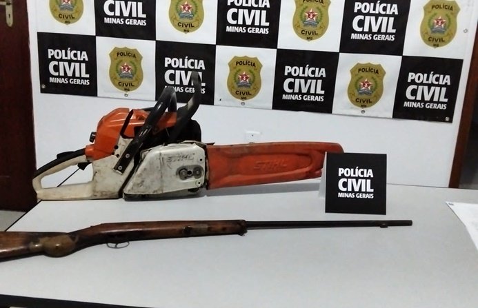 No endereço indicado, os policiais encontraram o suspeito e constataram que ele utilizava uma motosserra como instrumento de ameaça, elemento que evidenciou a gravidade concreta do cenário descrito.