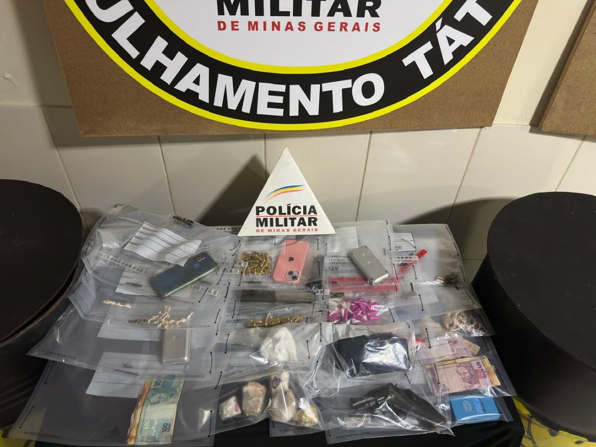 Três pessoas são presas por tráfico de drogas e porte ilegal de arma de fogo em Barbacena